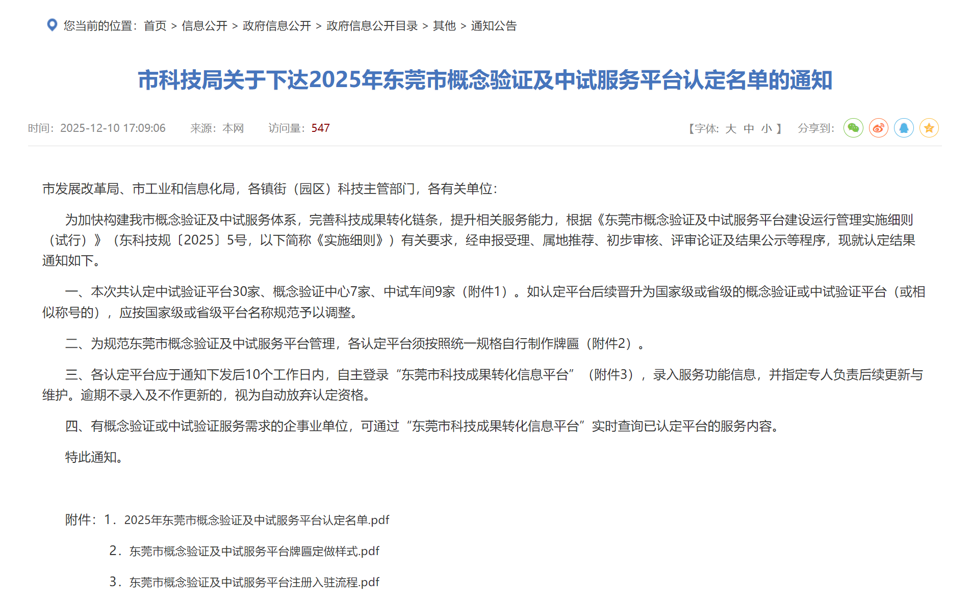 该中试平台已于12月10日经东莞市科学技术局认定,成为全市首批中试服务平台之一,标志着拓斯达在高端智能装备领域从研发、测试到产业化应用的全链条服务能力获得官方认可。
