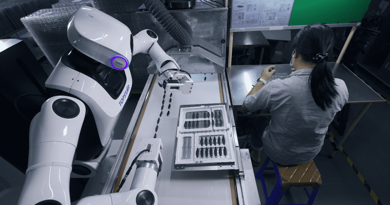 根據這一理念,在玩具製造行業,拓斯達推出了AI裝箱/裝盤工作站,這個行業產品多樣化、更新迭代快,需要頻繁換產,有時每2-4小時就要更換一次產品。