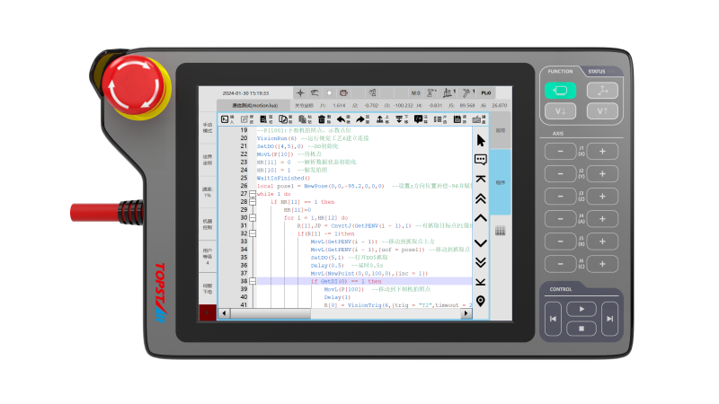 工藝軟體編程環境符合IEC61131-3國際標準,支持EtherCAT、RTEX、MECHATROLINK、CAN等多種工業總線通信協議。機器人控制器平臺可與拓斯達注塑機控制器實現一體化控制,集成豐富的注塑行業工藝包,有效提升注塑機與機器人協同效率。
